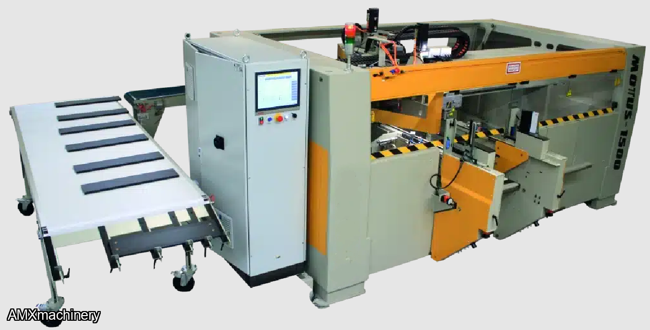 Throughfeed CNC milling and drilling machine with 3 work stations. A very flexible machine.