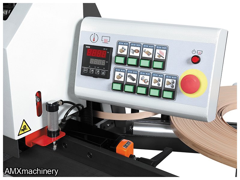 Is a compact edgebander capable of applying up to 3mm thick edge tape on cabinet parts and more. It comes equipped with high frequency motors on both the end trim and top & bottom trim. In addition it is equipped with PVC radius scraping and buffing units. It’s compact design and affordable price point make it the ideal edge banding solution for the small cabinet shop who does not require pre-milling.