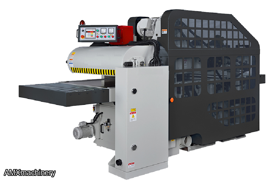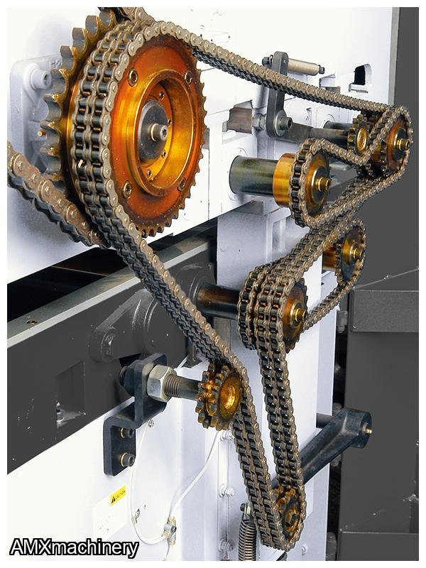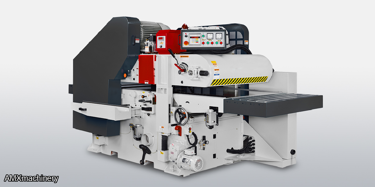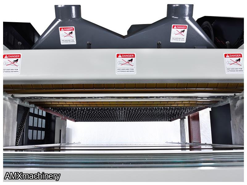 • Spring loaded conveyor pin system ensures material is passed over the bottom cutterhead to resulting in a flat and uniform board prior to planing to thickness on the top head