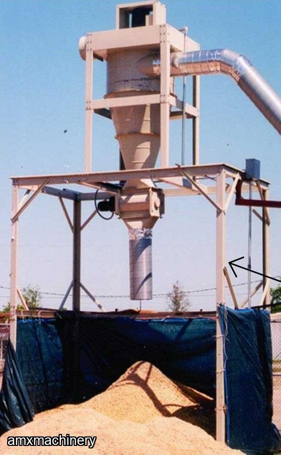 Powered unit with rotary airlock and multiple stand configurations to accommodate a variety of height and dumpster dimensions.