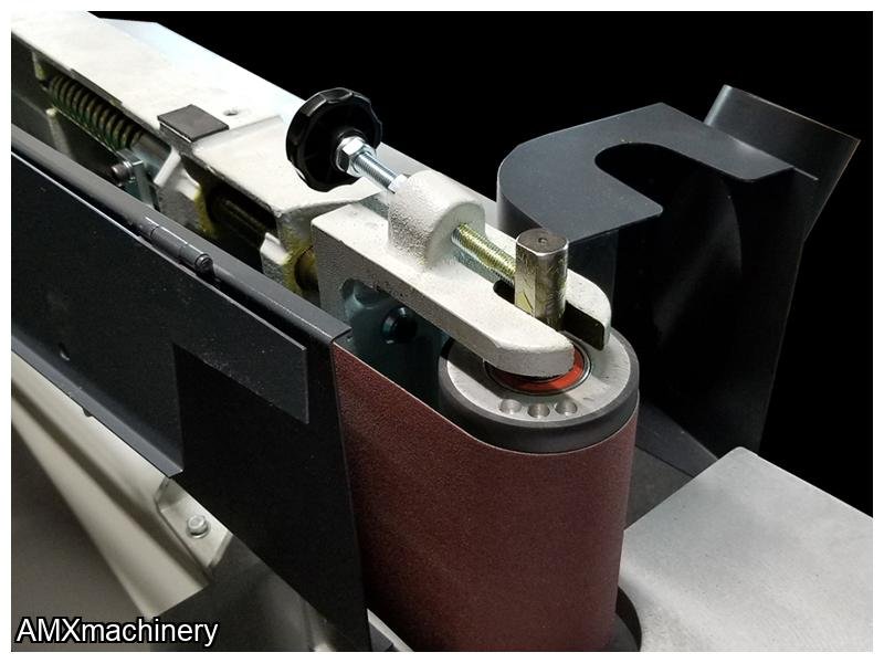 • Spring loaded front table allows for effortless adjustment of the table to the desired position on the belt
