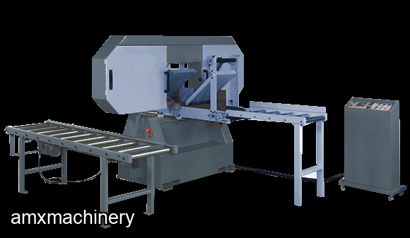 • When the feed conveyor is tilted for bevel cutting a side support is applied for safe and stable cutting operations.