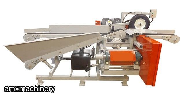 When setting the sawblade to the desired board thickness, the feed belt conveyor and the return belt are all simultaneously adjusted to maintain optimum height for peak performance
