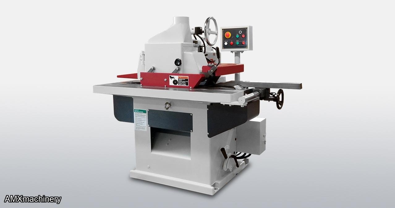 Is a straight line ripsaw that is the ideal ripping upgrade for those looking to prepare material for a moulder or for producing face frame material. Automatically feeds the material for consistent rip results. The cast iron feed chain runs on double V guide rails and holds the material firmly for precision straight cutting. A powerful 10 HP motor with maximum 12” blade provides a cutting depth up to 3.35”. A micro adjustable infeed fence allows for quick setups to ensure precise rip widths with fast adjustments.