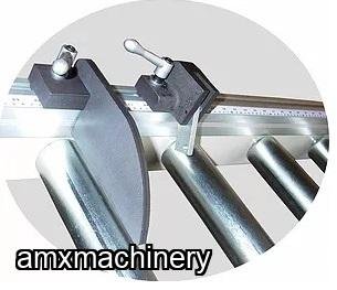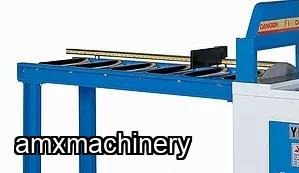 Extension stop is used on outfeed roller conveyor. It is convenient for length stop and for repetitive cutting in a mass production line.