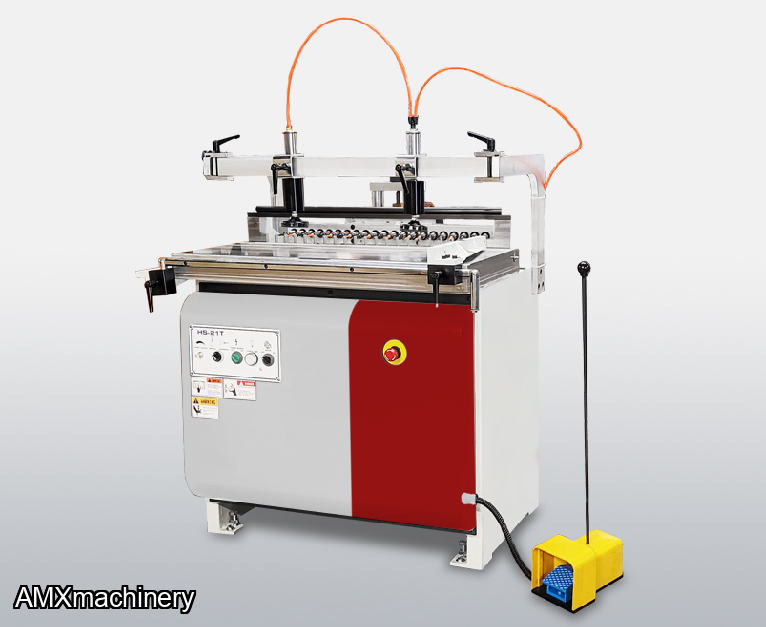 PARTE: 2CK-HS21TIs a versatile construction drilling machine which is capable of line boring, end drilling, & construction drilling functions.  The HS21T has a robust fabricated steel construction with precision machined cast iron table.  The boring head is cycled pneumatically and runs on precision linear guide rails for smooth drilling cycles. A 2 ½ HP motor powers the boring head with 21 gear driven drill bits and operates at 2800 RPM.  Each spindle is equipped with a quick-change chuck t...